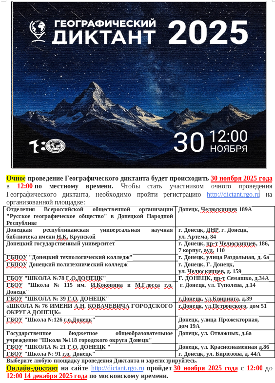 19.11.2023г. с 12:00 по 13:00 дистанционно состоится ВСЕРОССИЙСКИЙ ГЕОГРАФИЧЕСКИЙ ДИКТАНТ-2023.